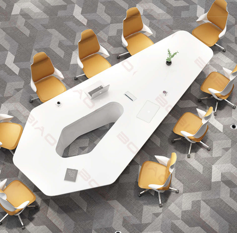 현대 디자인 광택 흰색 특수 모양 육각 센터 구멍 사무실 가구 회의 테이블 회의 테이블